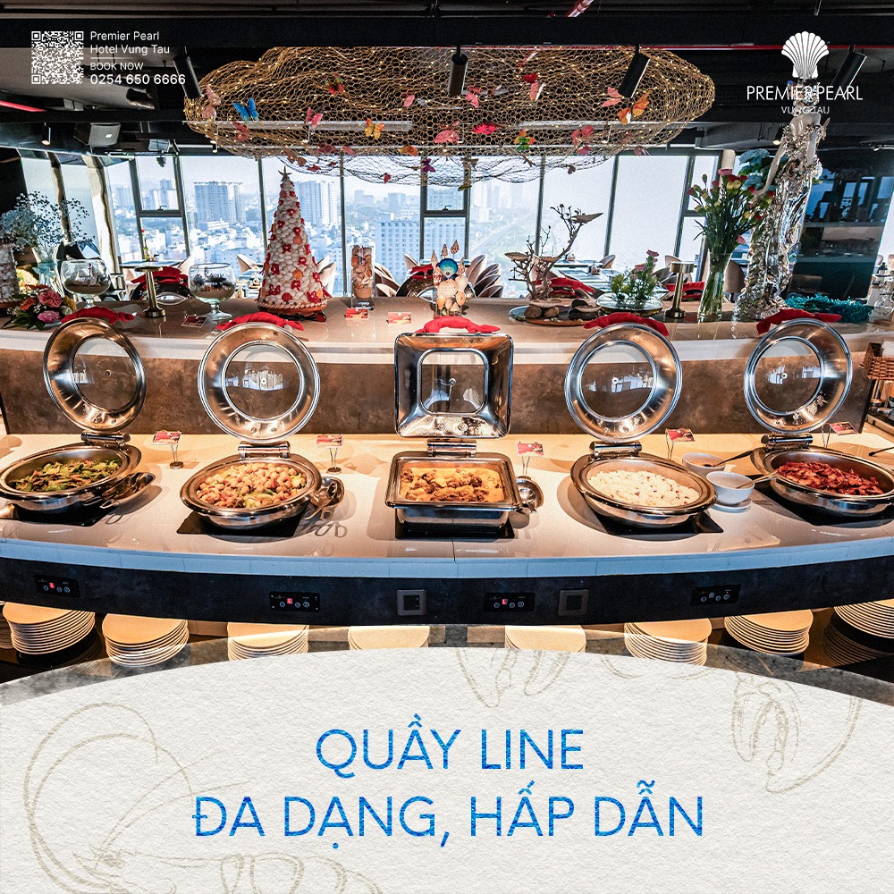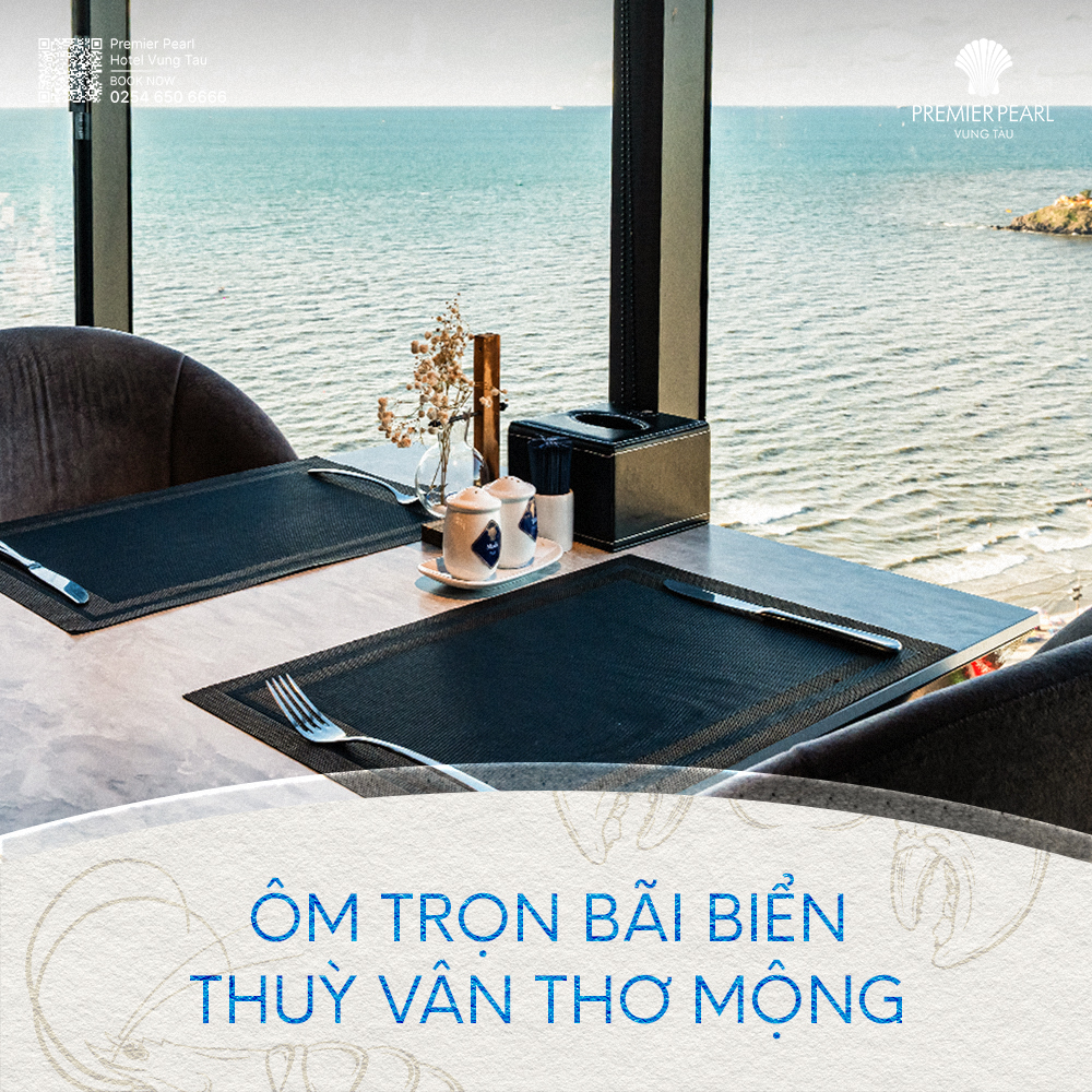 Đó là khi bạn đang ngồi trên tầng thượng, thưởng thức buffet trong không gian sang trọng tại Premier Pearl Hotel Vũng Tàu, phóng tầm mắt ra bãi biển Thùy Vân thơ mộng trải dài trước mắt. Ánh nắng nhẹ nhàng phản chiếu trên từng món ăn, và sâu bên trong, bạn cảm nhận được một sự thư thái lan toả khắp cơ thể.