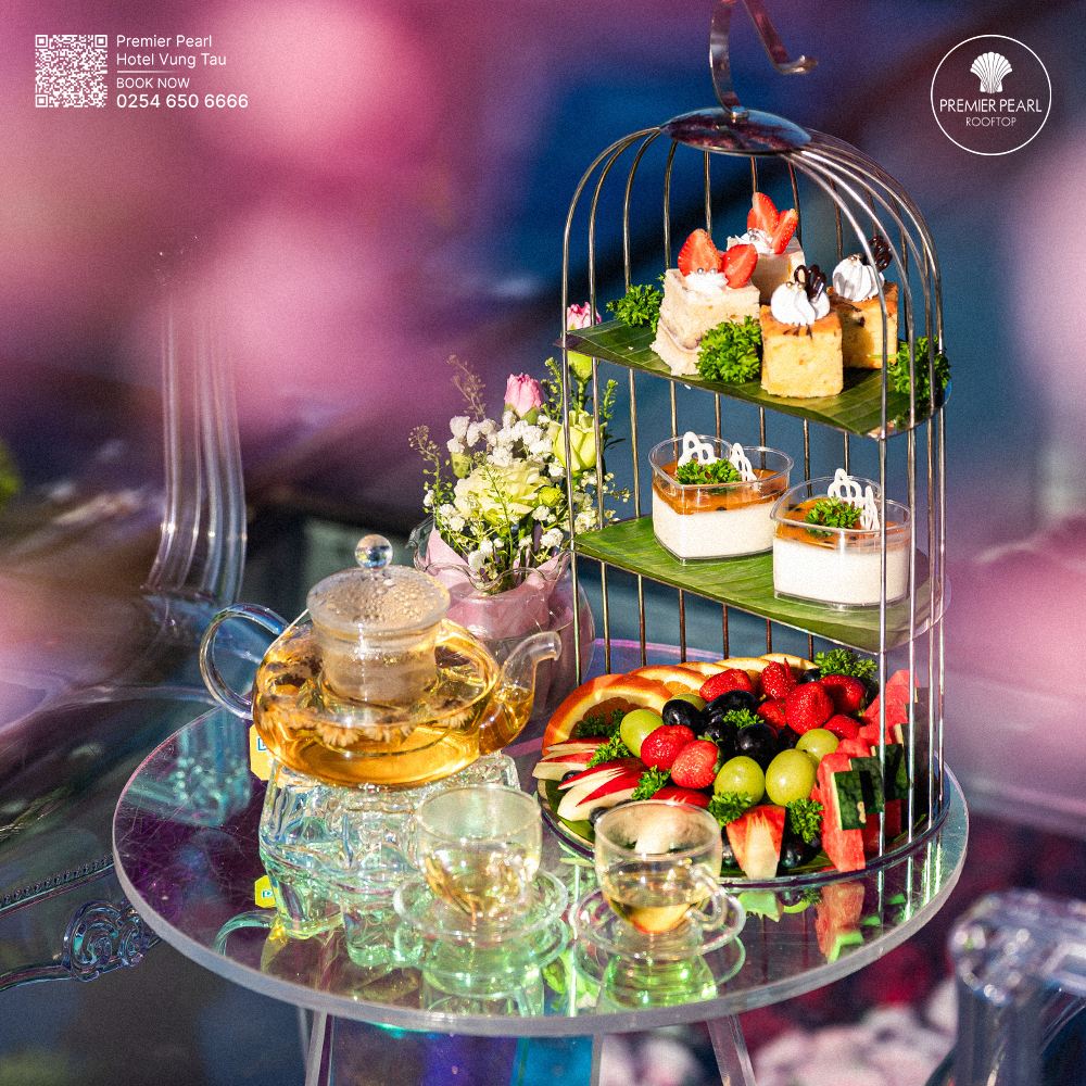 🌊 Phố biển khoác lên mình lớp nắng dịu cuối ngày, gió khẽ đưa hương mặn của sóng, mọi thứ bỗng chậm lại. Trước mặt bạn là tiệc trà chiều sang trọng với những tầng bánh được bày biện tinh tế, giữa không gian rực rỡ sắc hoa rung rinh dưới ánh nắng.