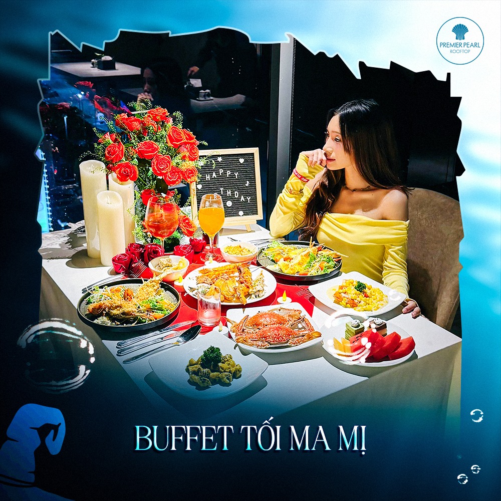 Halloween này, con thuyền của 𝐏𝐫𝐞𝐦𝐢𝐞𝐫 𝐏𝐞𝐚𝐫𝐥 𝐑𝐨𝐨𝐟𝐭𝐨𝐩 sẽ khởi hành giữa lòng đại dương đêm, đưa bạn bước vào một hải trình vị giác huyền bí. Từng làn sóng buffet lênh đênh hòa cùng ánh sáng ma mị, những món ngon được bày biện trên “boong thuyền” rực rỡ suốt ngày đêm: