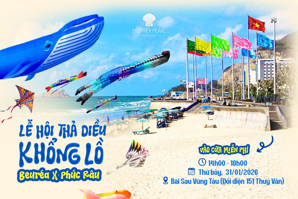 Chỉ vài bước chân từ 𝐏𝐫𝐞𝐦𝐢𝐞𝐫 𝐏𝐞𝐚𝐫𝐥 𝐇𝐨𝐭𝐞𝐥 𝐕𝐮̃𝐧𝐠 𝐓𝐚̀𝐮, hãy hòa mình vào lễ hội diều rực rỡ và tận hưởng không gian sang trọng bậc nhất: