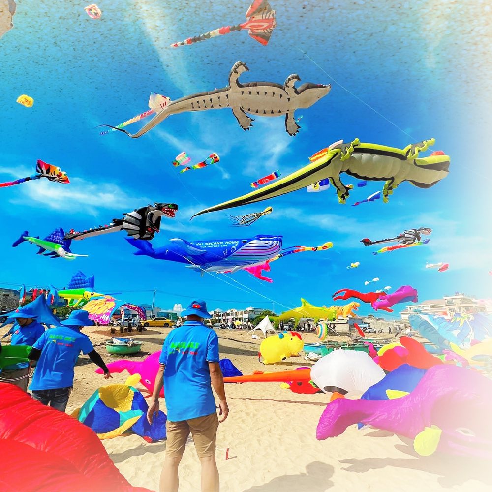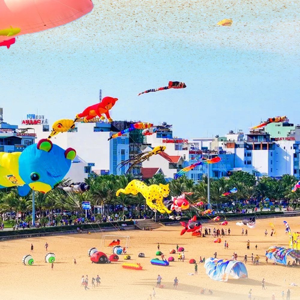 Awaken the skies of Back Beach with vibrant colors from the mega event: Giant Kite Festival – Beuréa X Phuc Rau. A gathering of iconic kites that transforms the horizon into a vivid, festive masterpiece.