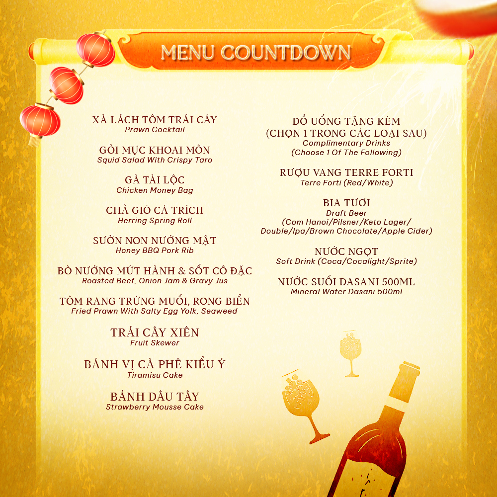 22h00 – 00h00: Bùng nổ năng lượng cùng dàn MC, DJ & Dancer khuấy động không gian và thưởng thức thực đơn Countdown độc bản tại Skylight Bar.
