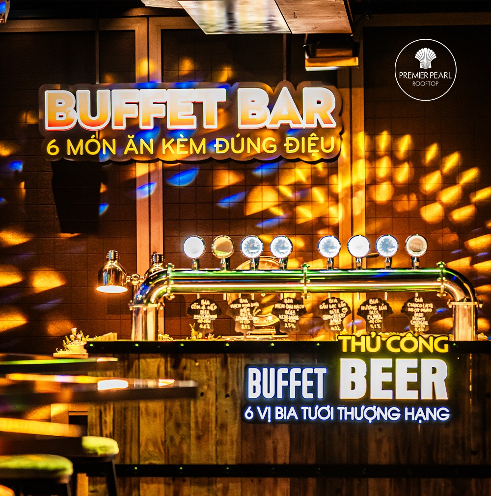 Buffet Bia Thủ Công: Thưởng thức trọn vẹn 6 vị bia đặc trưng, từ thơm nồng đến đậm đà.