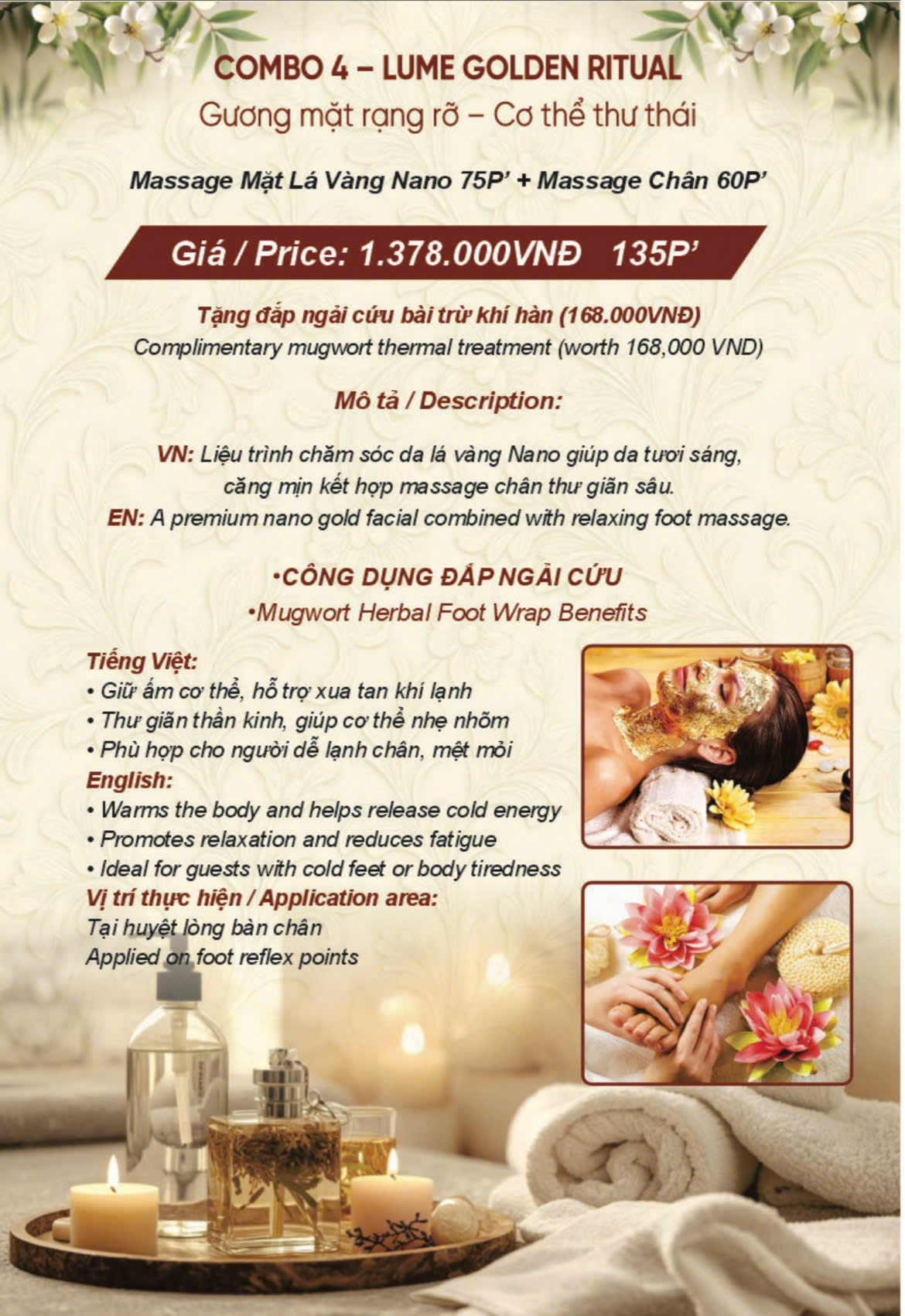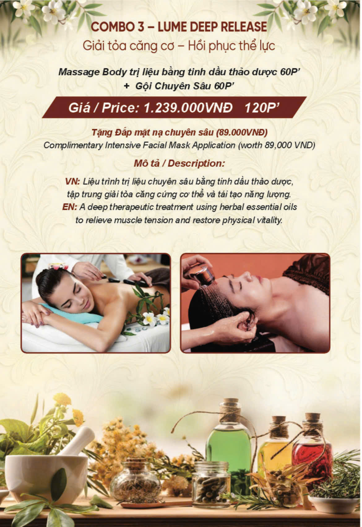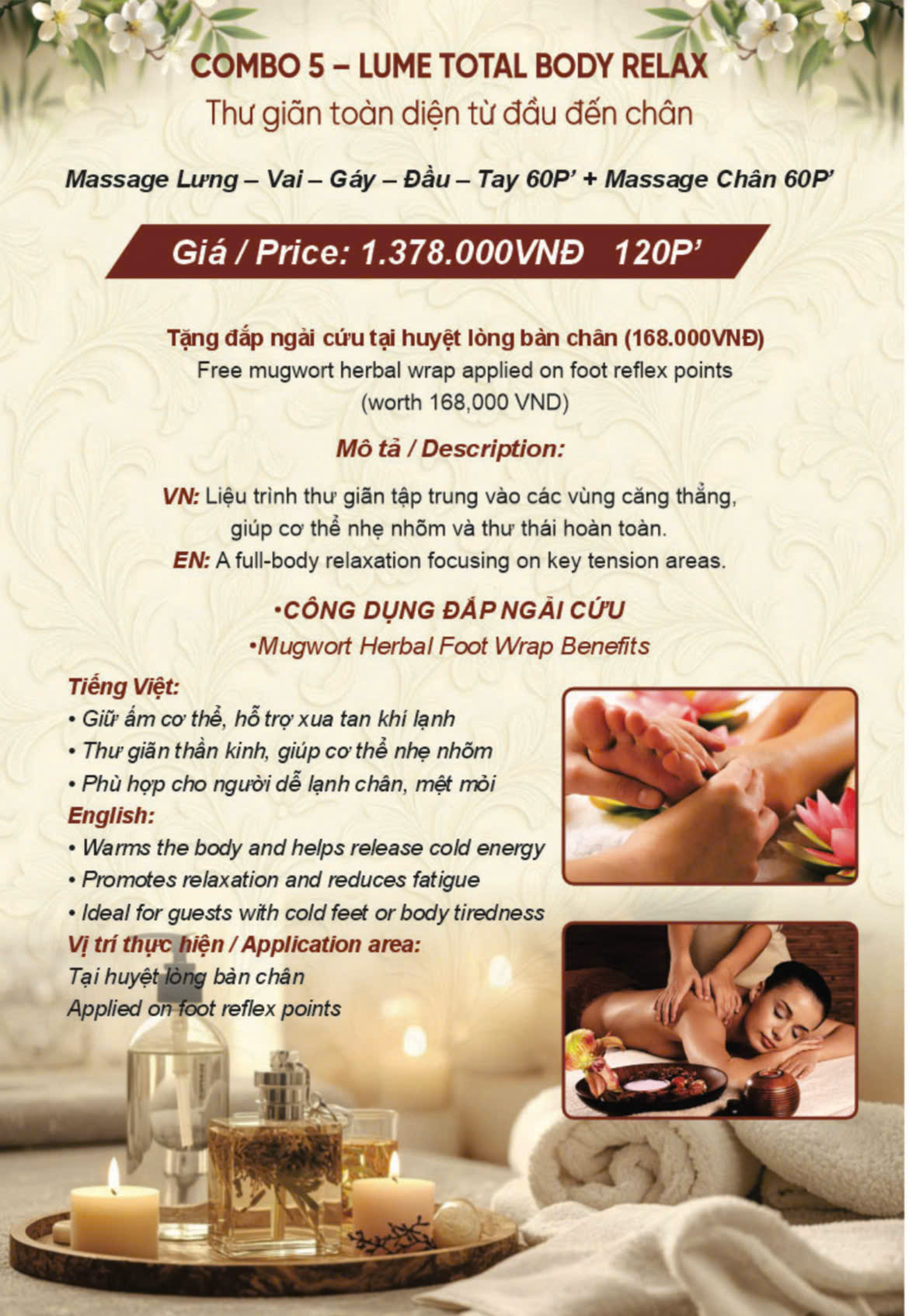 Đặc biệt hơn trong thời gian này, 𝐏𝐑𝐄𝐌𝐈𝐄𝐑 𝐏𝐄𝐀𝐑𝐋 có ngay ưu đãi TẶNG 30 PHÚT FOOT MASSAGE khi đặt phòng trực tiếp giúp bạn có được những phút giây xoa dịu và tái tạo cơ thể. Ngoài ra, một loạt các liệu pháp spa Thái và gói dịch vụ chăm sóc đa dạng tại Lume Spa còn là điểm sáng cho hành trình nghỉ dưỡng này.